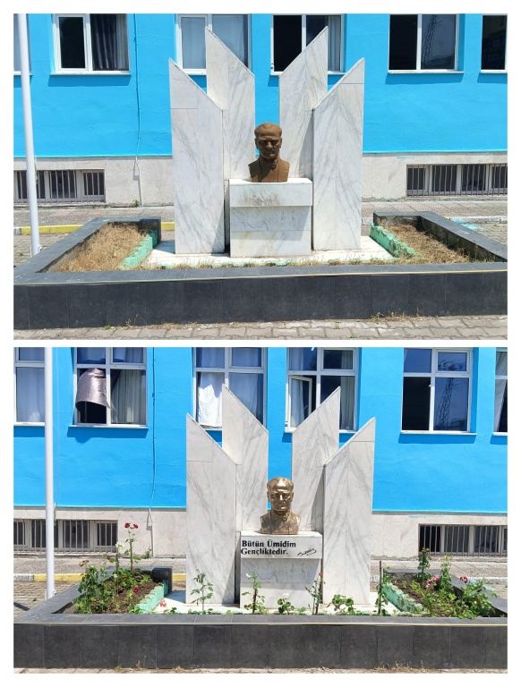 Okulumuz Atatürk Büstünün bakımı yapılmış, eksik olan yazısı yazılmış ve etrafı çiçeklendirilmiştir.